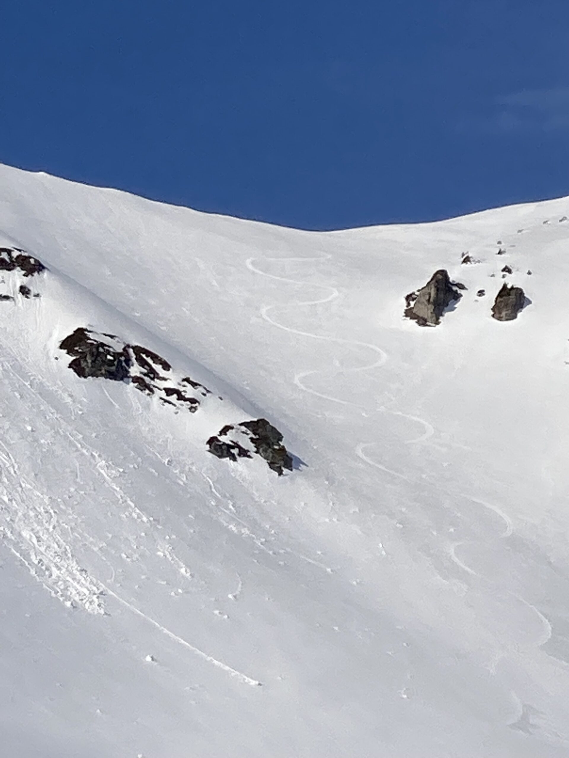…o perspectiva unica asupra muntelui pe care o poti avea patrunzand in universul alb pe schiuri de tura, ca apoi sa traiesti infuzia de adrenalina pe trase inedite conditionate de tehnica si configuratia fetelor inzapezite pe care le parcurgi in coborare libera.